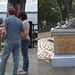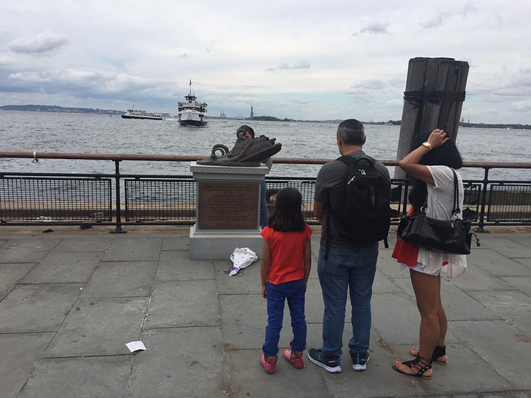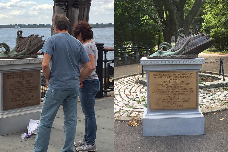 In addition to creating an elaborate and realistic looking website, documentary video, and historical documents, Reginella also created a realistic brass and stone memorial plaque he brings to Battery Park and other tourist-heavy areas.