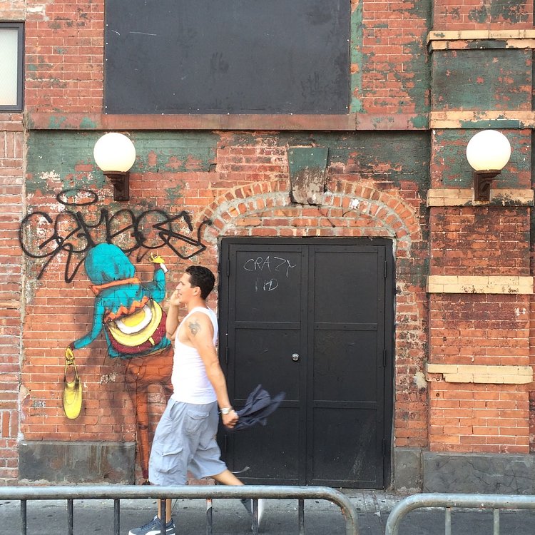 Os Gemeos are now back to the roots with a smaller street piece that just popped up in New York City. Painting on Houston near Bowery, the famed Brazilian duo brought to life one of their unique and distinctive character for the locals to enjoy. This cheeky and trendy yellow guy is of course creating a tag that reads "Gemeos".