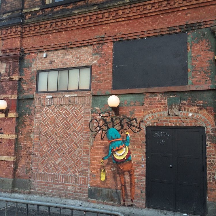 Brazilian street art duo Os Gemeos have been pretty active in the City this month, working on a massive new mural in the Bowery, their Midnight Moment in Times Square, and now this new life-size piece.