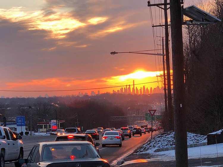 Though maybe not the best framing, this epic photograph shows the New York City skyline lit ablaze in front of a orange and red rising sun seen from New Jersey. One redditor summed it up pretty nicely: