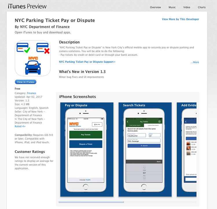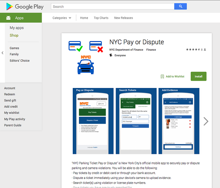 The NYC Parking Pay or Dispute App is an official app for iOS and Android from the City of New York in which you can pay or dispute parking tickets and violations given in the City. According to the app, you are able to: