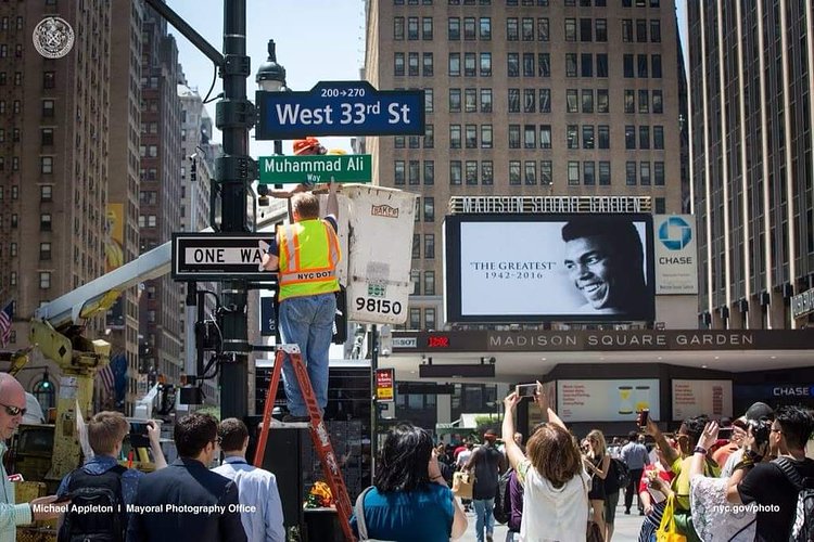 The City of New York formally honored recently deceased boxer and activist Muhammad Ali by renaming 33rd Street in front of Madison Square Garden, a place he fought on several occasions, to "Muhammad Ali Way."