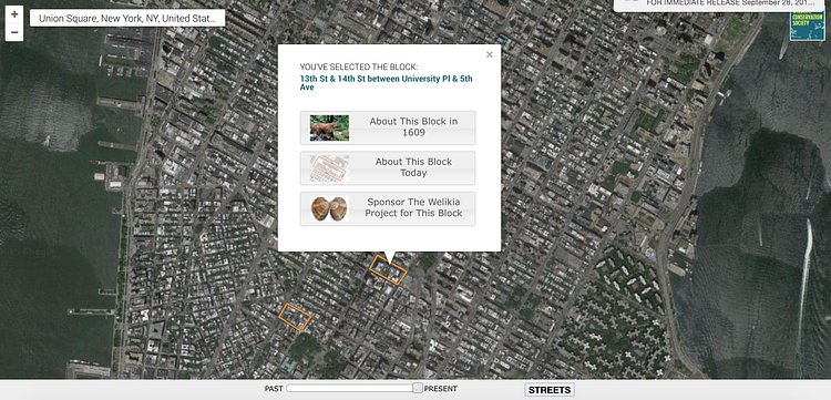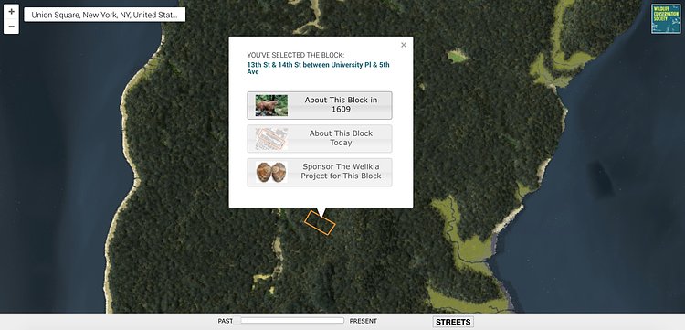 Click on any modern Manhattan block and learn more about the makeup of the area in 1609, or in modern time.