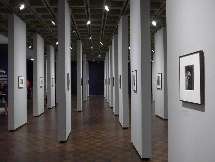 For those unfamiliar, Arbus is the original Humans of New York photographer who took an interest in capturing intimate portraiture on the streets of New York that is full of narrative, scandal, and personality. The exhibit contains over 100 photographs of single subjects, each on its own standalone column. Without a clear beginning, end, or sequence to the viewing experience, visitors are invited to wander to each photograph and view it intimately, much as Arbus the photographer might have viewed each subject.