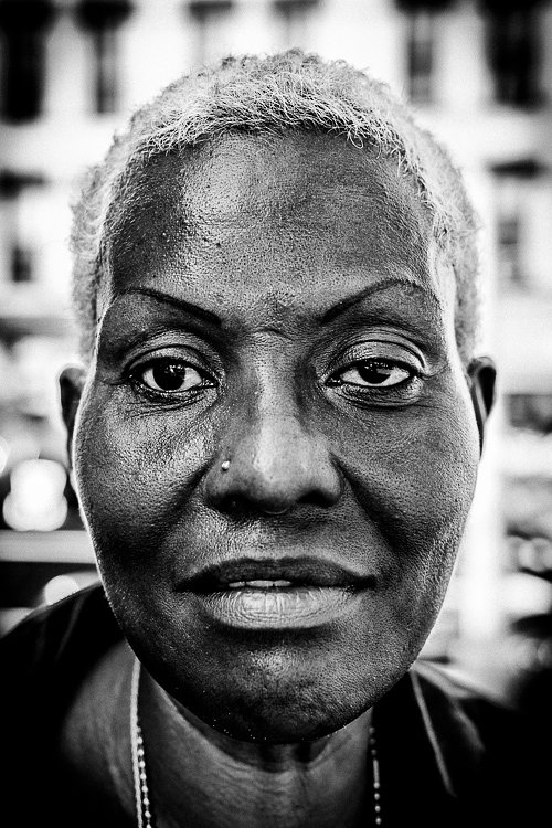 These uninteruppted images, give pause with their directness, concentrating attention on each face whose eyes return the gaze, affirming their existence and requesting acknowledgement. In New York City, we look down and away, too busy to meet the eyes of strangers, or fearful that the might ask us for the most precious of emotional commodities: recognition.