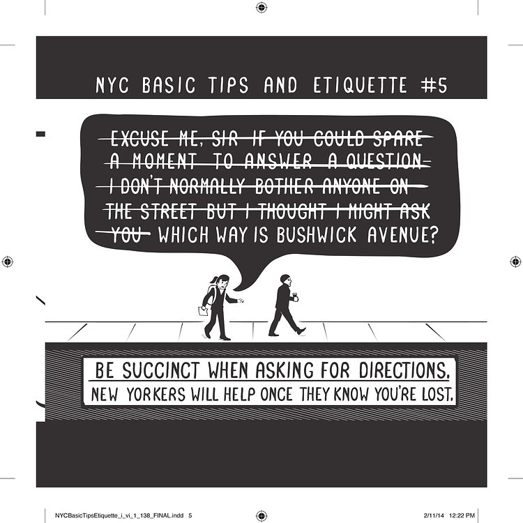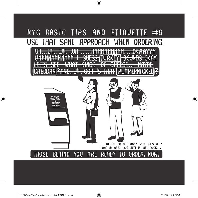 NYC Basic Tips & Etiquette by comic artist Nathan W. Pyle is a comedic guide for transplants and tourists that explains how life works in the City. For us locals, the guide can be a funny reminder that the rest of the country doesn't necessarily operate by the same rules.