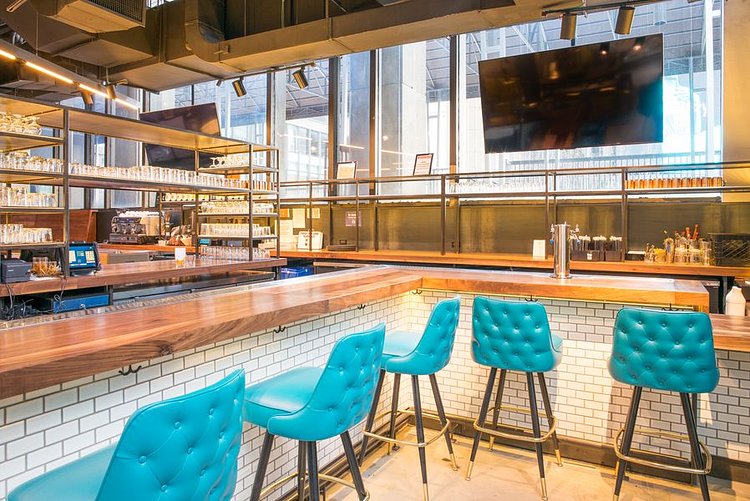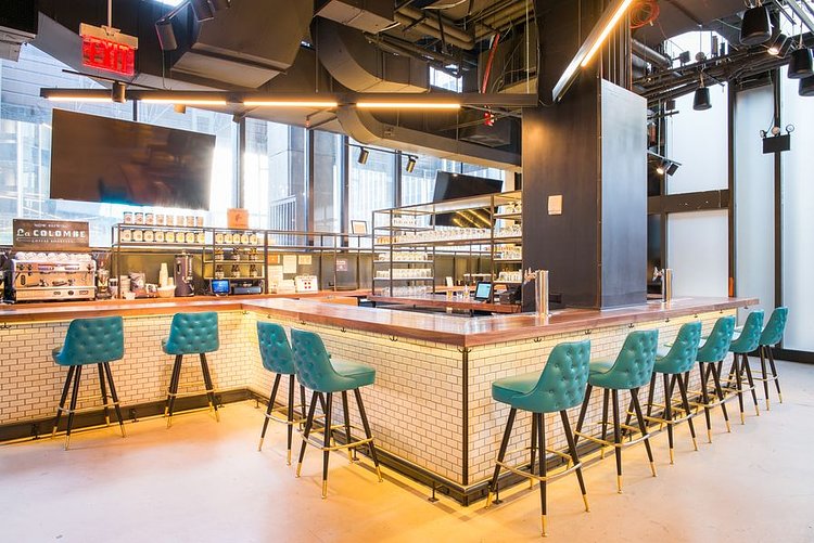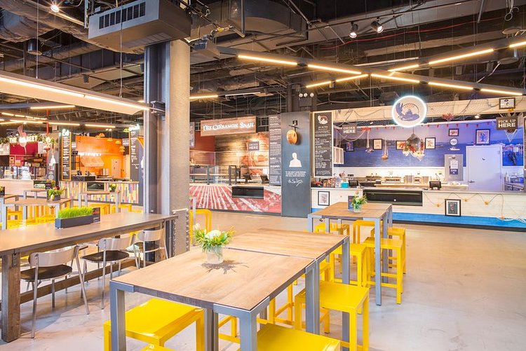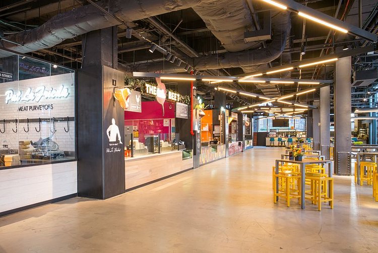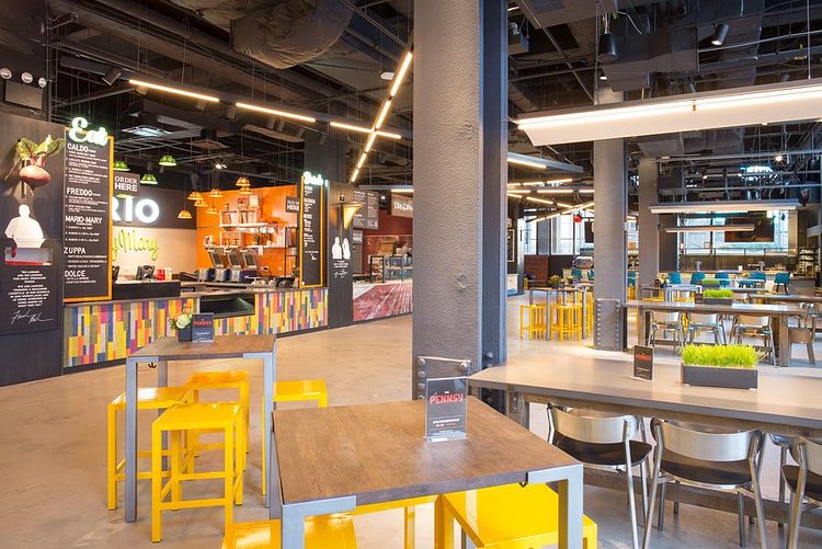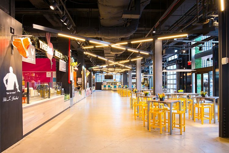 It features stalls from Marc Forgione, Franklin Becker, Pat LaFrieda, and the Cinnamon Snail team, plus Mario By Mary, which is a collaboration between Mario Batali and Mary Giuliani. The Pennsy has a full-service bar and over 8,000 square feet of space. In the summer there will be additional outdoor seating.