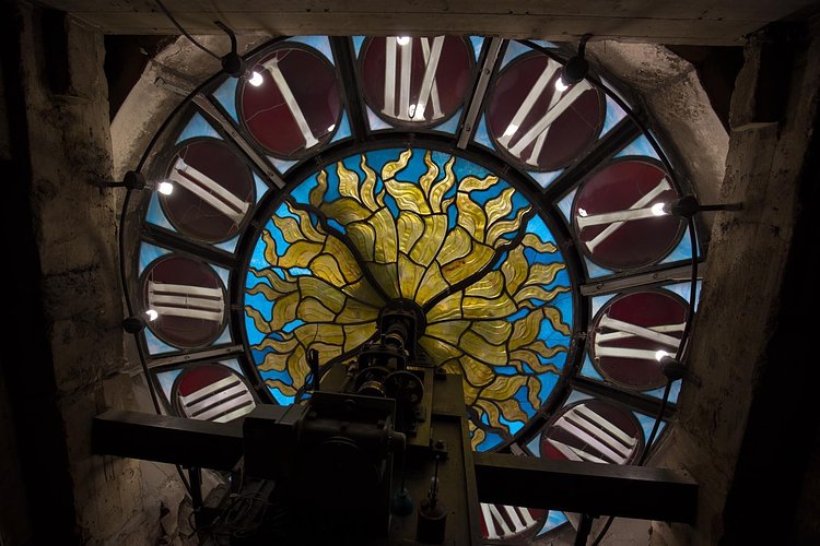 The clock is not easy to get to—even the access point is in an off limits area, and once you get through that door, you'll need to climb up a series of old, thin, metal ladders. These lead to a wooden room that most closely resembles an attic. It almost seems as though it's gone untouched since the clock was installed in 1914, with gears, layers of dust and old oil cans the only other presence.