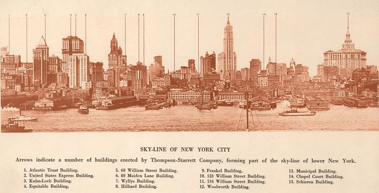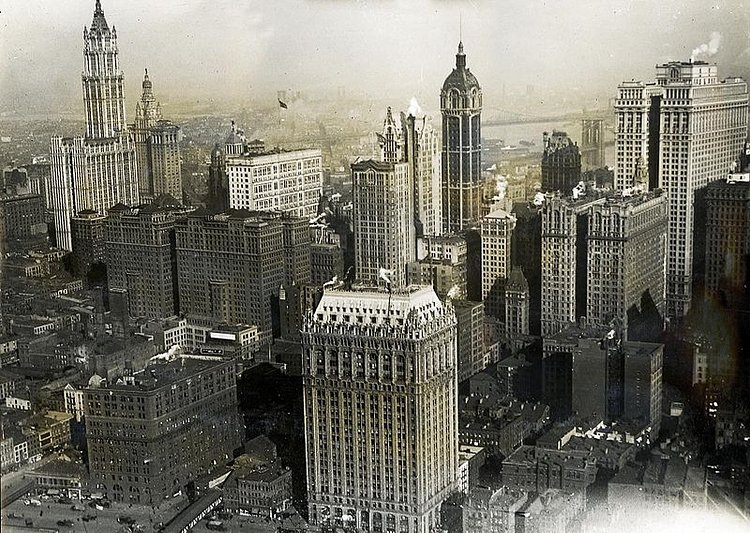 Historical NYC is a blog which publishes in-depth analysis of vintage New York City photographs and maps. Recently they published a quick post of some amazing skyline photographs of the City that didn't necessarily have enough detail to warrant an exhaustive long-form post, but still definitely worth a look. These photographs and illustrations seem to range in age from about 150 years ago until the 1950's, but if you want to know for sure, or have other questions on these shots, Historical NYC welcomes them in their comments on the original post.