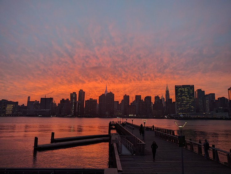 This stunning photograph, uploaded by redditor NaolaN, shows a fiery red sky during a cloud-filled sunset over the Midtown Manhattan skyline and East River, as seen from Hunter's Point in Astoria.