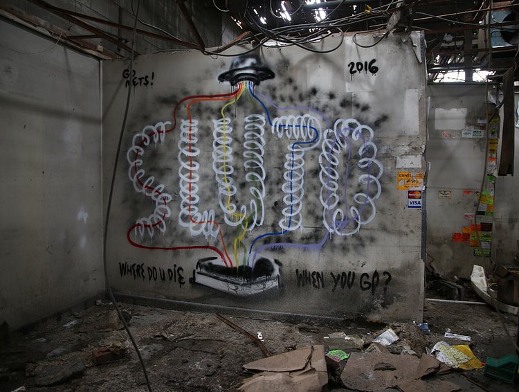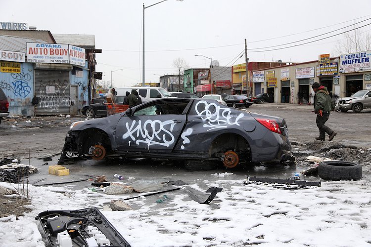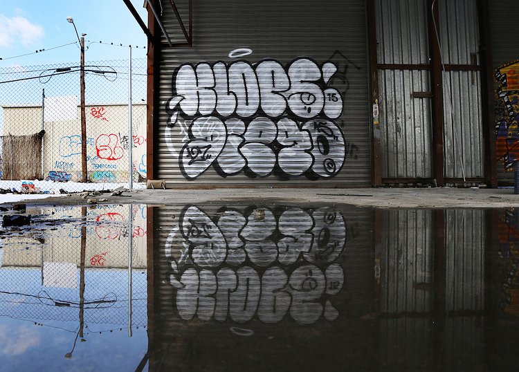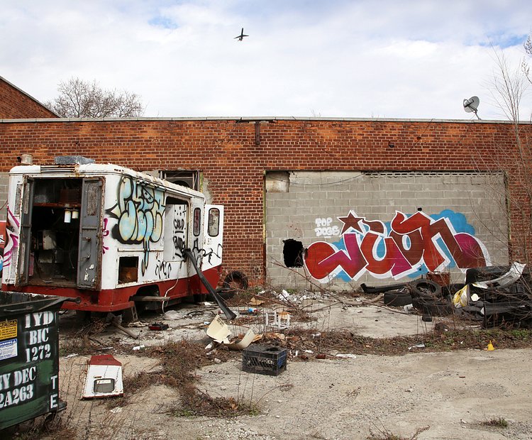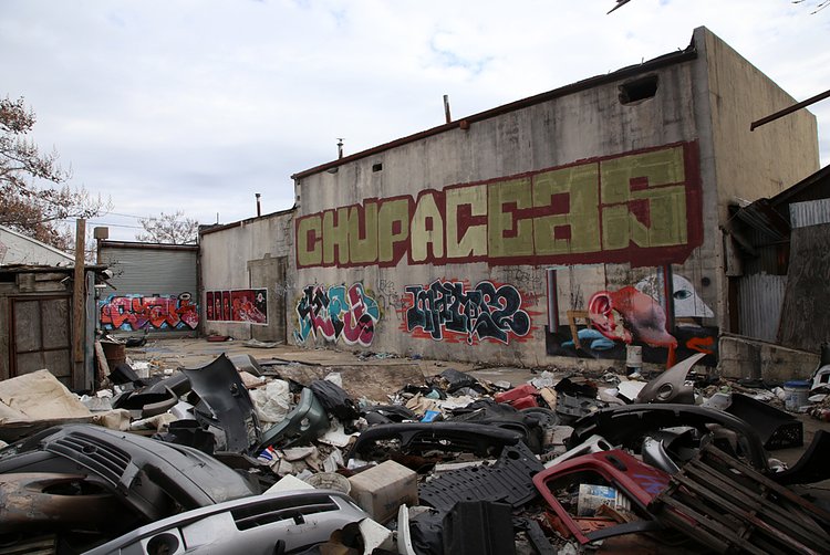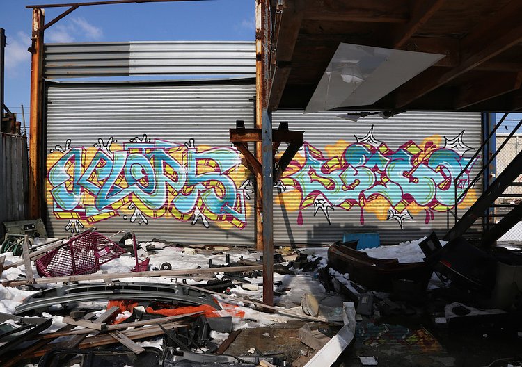 Once populated by over 100 bustling auto body shops and junkyards, an eerie quiet has now settled over its pothole-riddled streets.[…]But dig among the abandoned garages, piles of trash, and skeletal remains of cars and you'll find a treasure trove of tags, painted characters, and colorful, intricate letters forming an almost-natural bond with the desolate scenery. This is Willets Point, a.k.a. the "Iron Triangle," and it's become a playground for some of the most talented graffiti writers in New York City over the last few years.