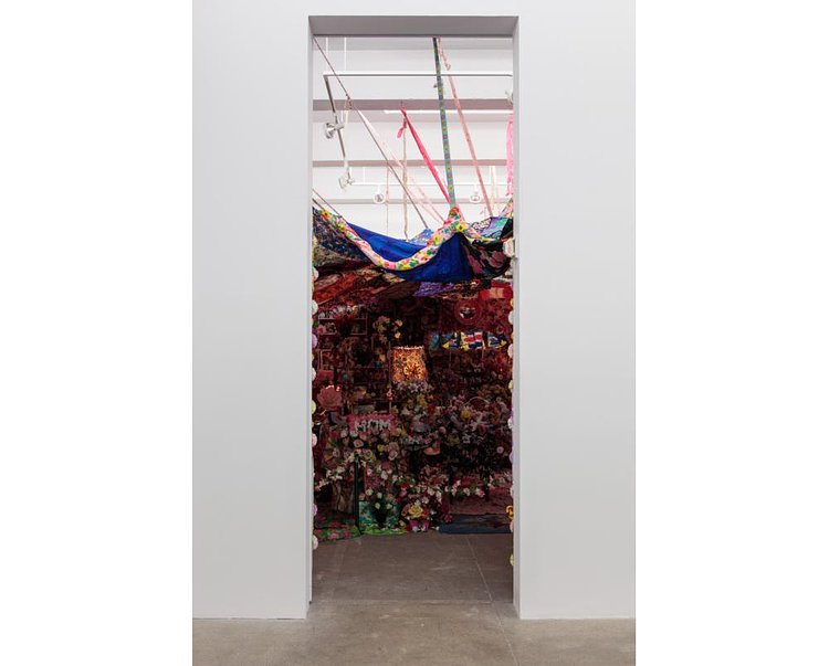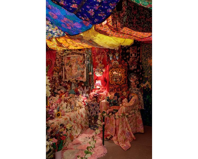 While one room has detailed and vibrant quilts that drape the ceilings, another is filled with elaborate, painted dolls. Munson's exhibit combines her work from the 1990s to work from today, providing a unique commentary on how femininity is portrayed in society, presenting itself as a visually stimulating garden of girly delights.