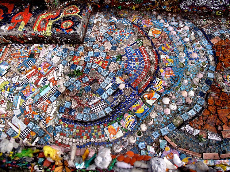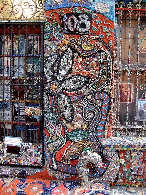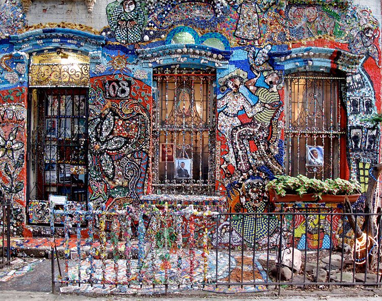 One day in 2001 shortly after 9/11, Brooklyn artist Susan Gardner went outside and decided to glue things to the front of her house. What started as a mosaic flower to try and cheer up the neighborhood ended up growing into a 14 year art project completely enveloping her Boerum Hill home in mosaic tiles. Hidden City recently wrote up a piece on the project: