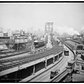 The Brooklyn Bridge frames this unique view of lower Manhattan at night in 1928. The Woolworth Building (partially seen behind the tower of the bridge) was still the tallest building in the world. In the center of the photo is the third tallest building in the world, the Singer Building at Liberty Street and Broadway. The second tallest building at the time was the Metropolitan Life Insurance Building on 23rd Street and Madison Avenue.