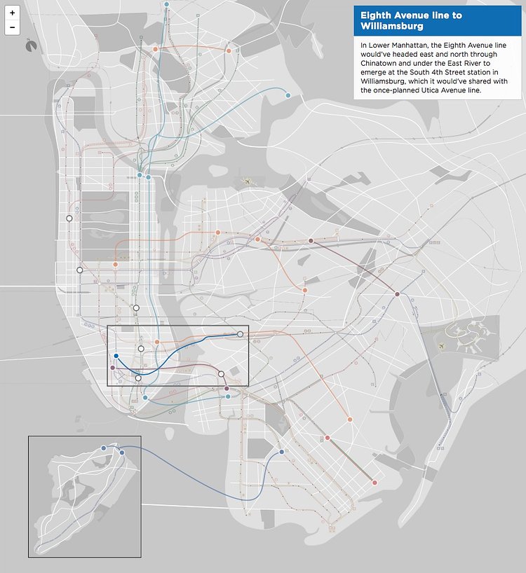 A recent project from WNYC entitled The Lost Subways of New York places all the once planned but never-completed subway lines and stations onto one amazing interactive map.
